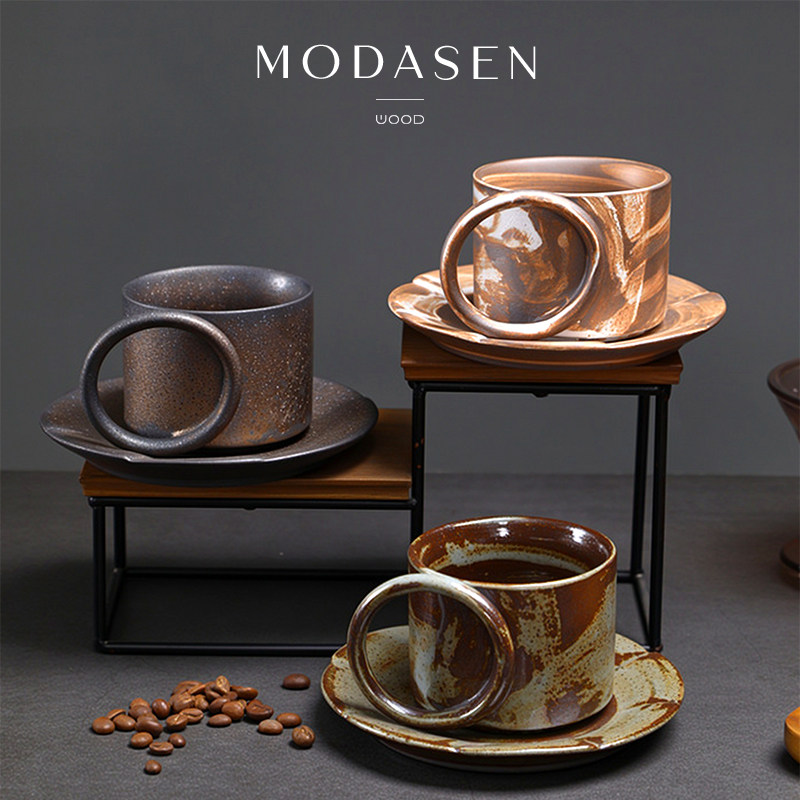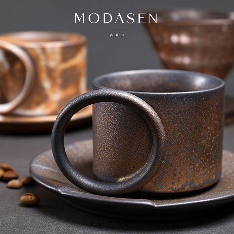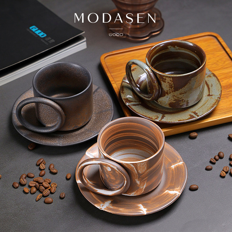 MODASEN丨圆把 IDIR复古窑变陶瓷咖啡杯碟家用创意下午茶杯水杯子