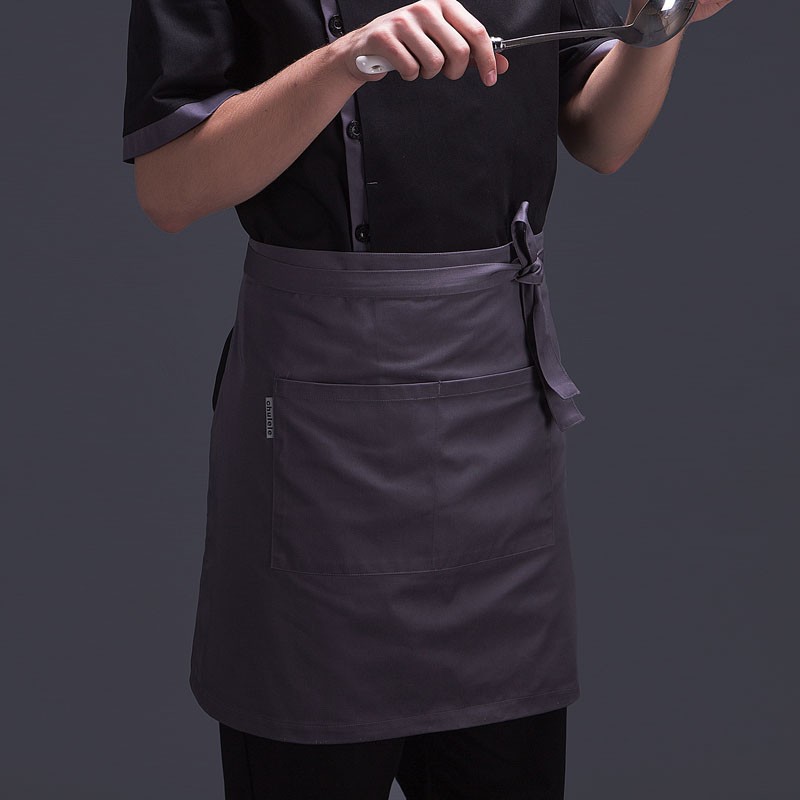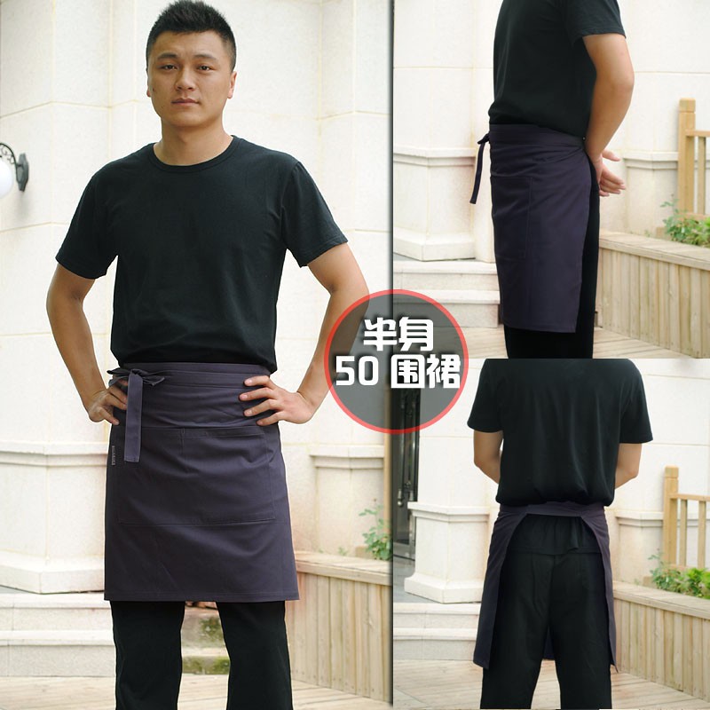 韩版灰色厚料西餐咖啡厅快餐店厨师服务员半身挂脖工作围裙男女款