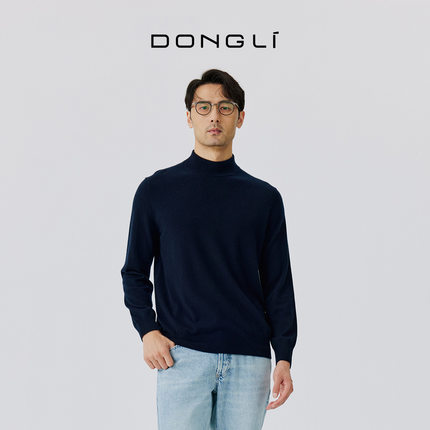 东黎 丝绒款 春秋季山羊绒桑蚕丝男士半高领套头羊绒针织衫S2115