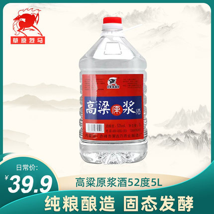 内蒙古高度白酒桶装5升纯粮食原浆高粱酒52度散装泡药酒整箱特价