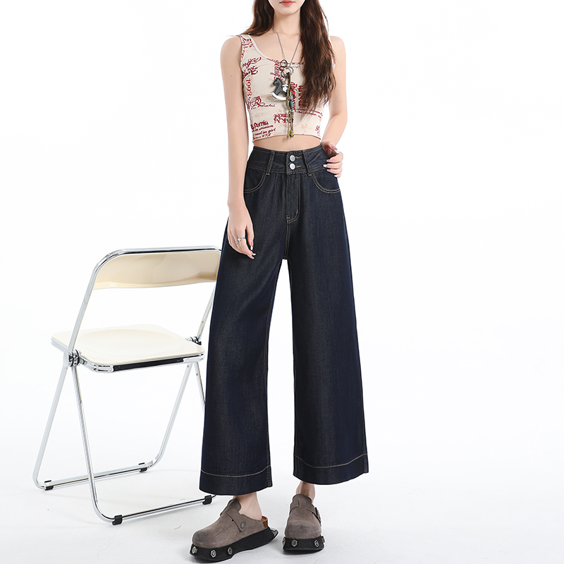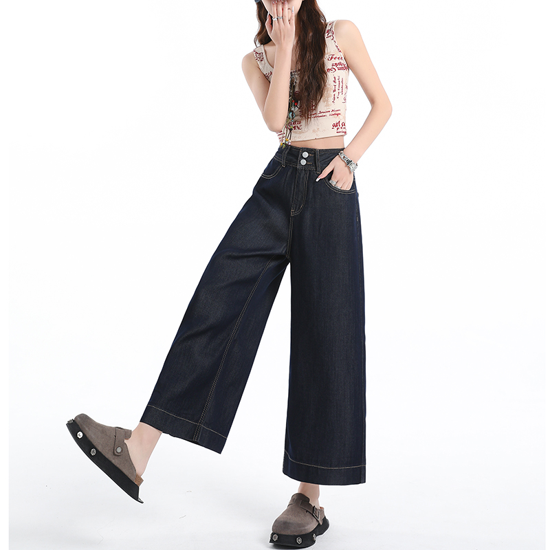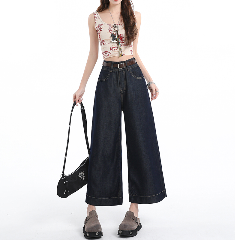 天丝阔腿牛仔裤女新款冰丝九分裤