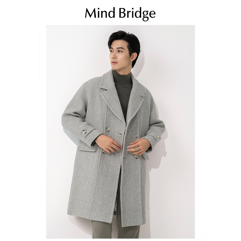 Mind Bridge人字纹单面羊毛呢子大衣男士风衣外套2024春秋季上衣