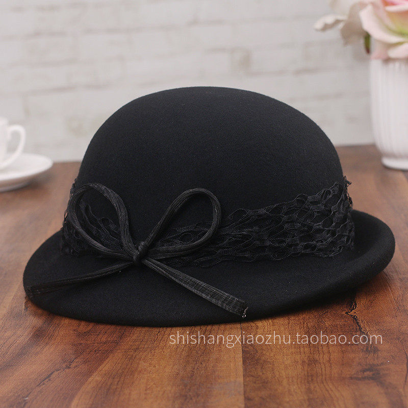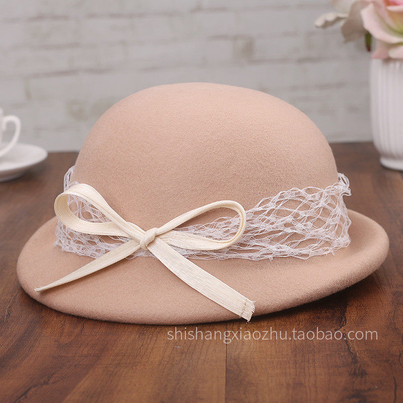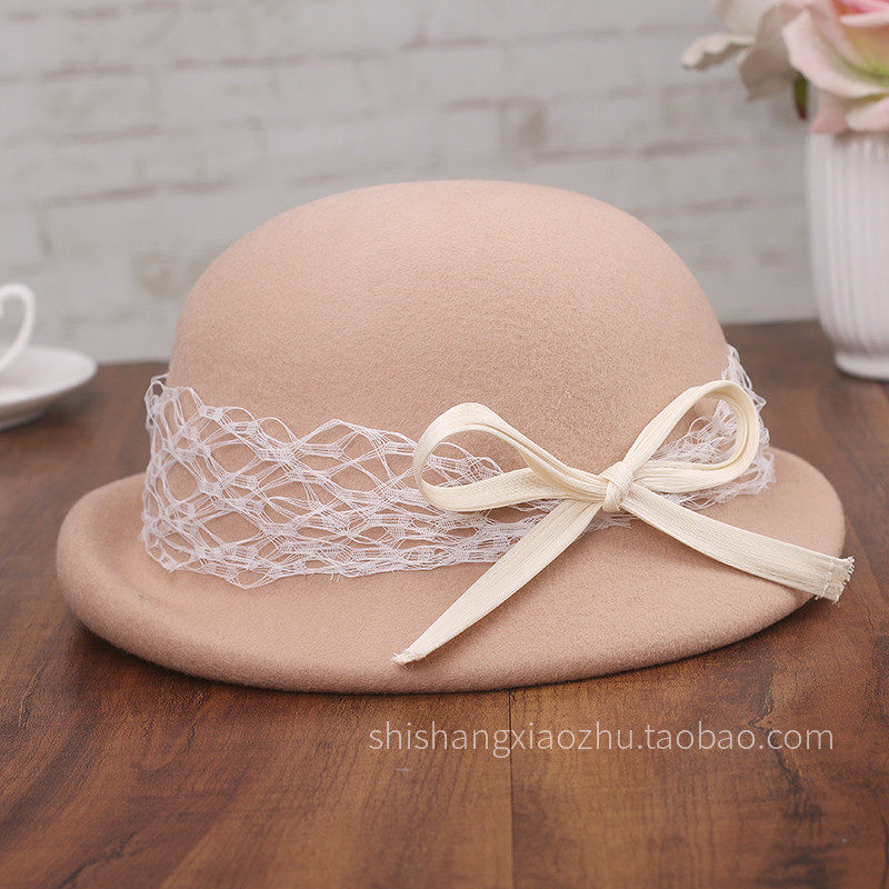 真丝麻蝴蝶结羊毛呢贝雷帽