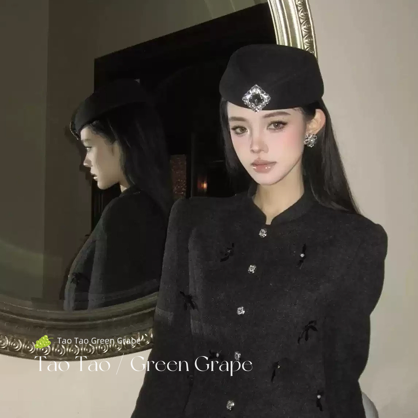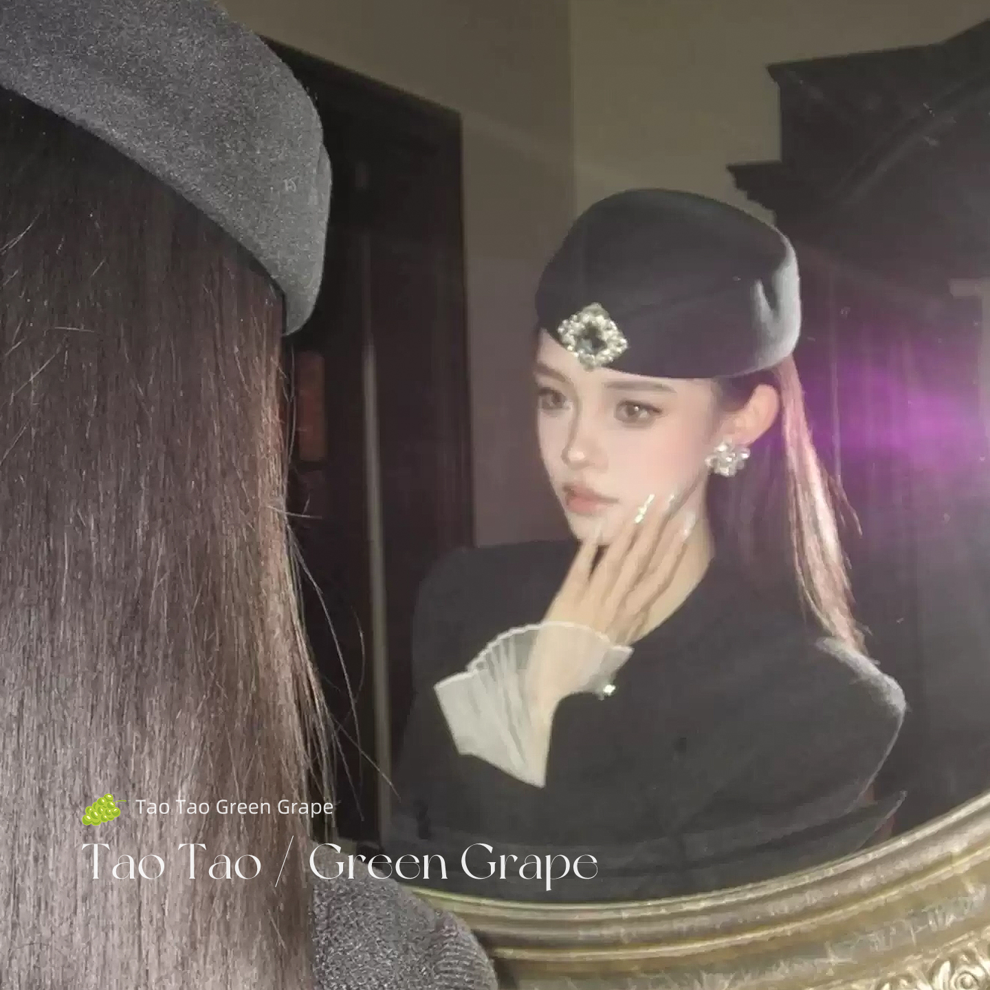 留洋千金法式赫本风黑色平顶小礼帽女2025新款秋冬显脸小贝雷帽子