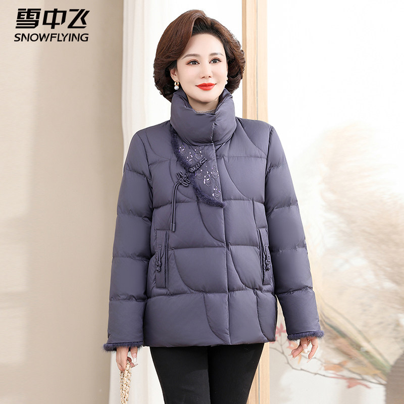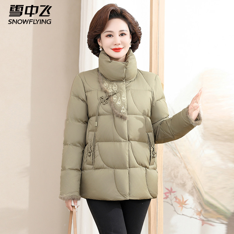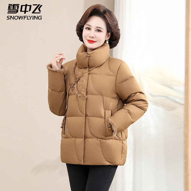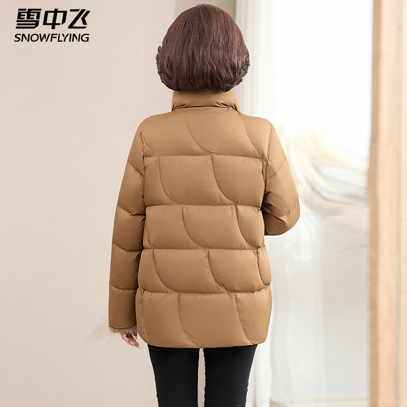 雪中飞冬季2025新款羽绒服女中年妈妈短款立领冬装中老年减龄外套