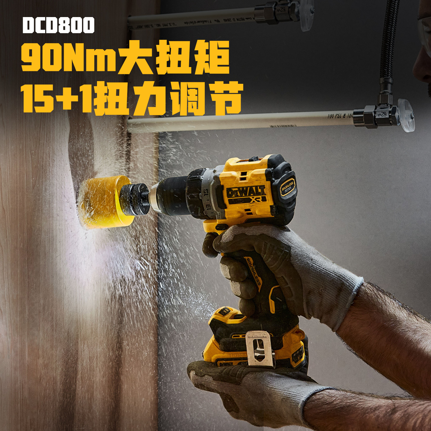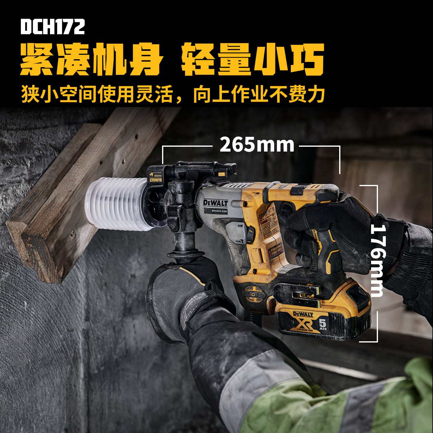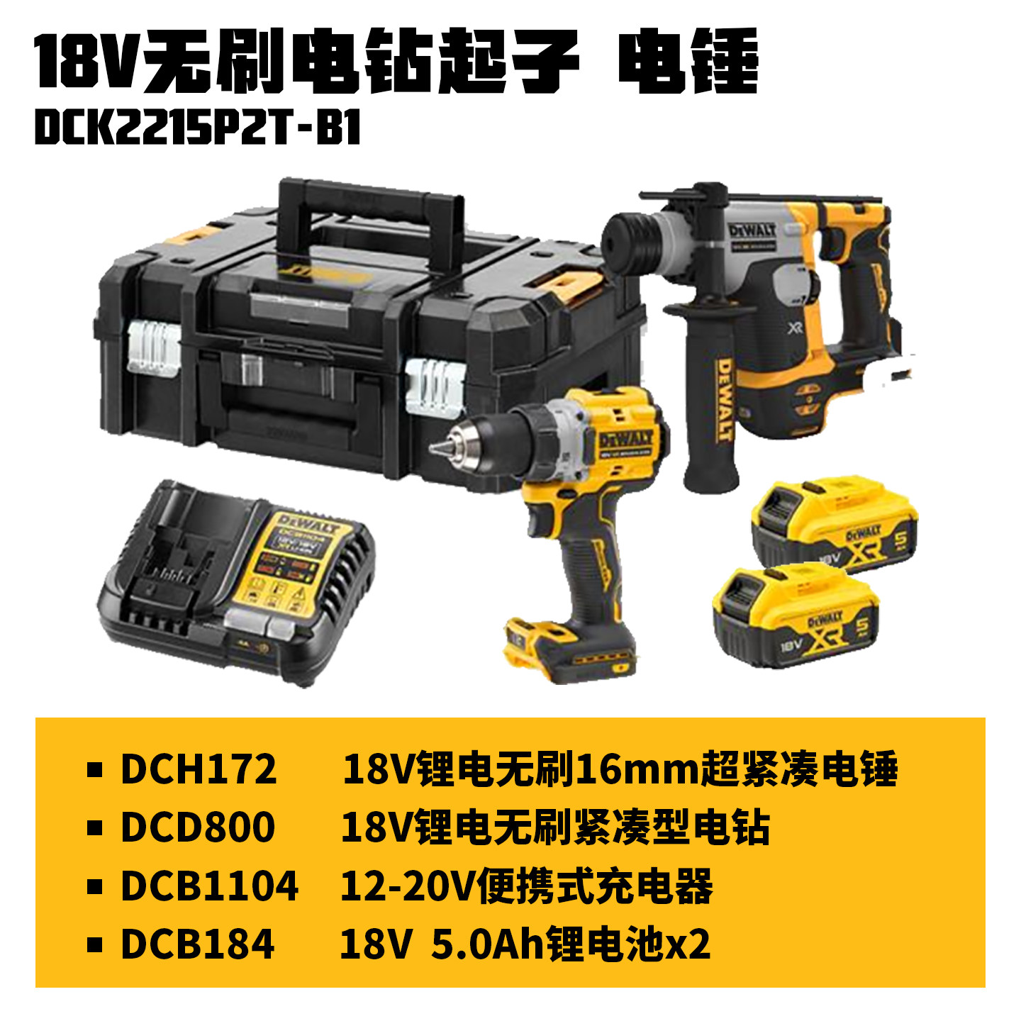 DEWALT得伟锂电钻无刷20V充电式电锤套装手持紧凑型DCD800/DCH172