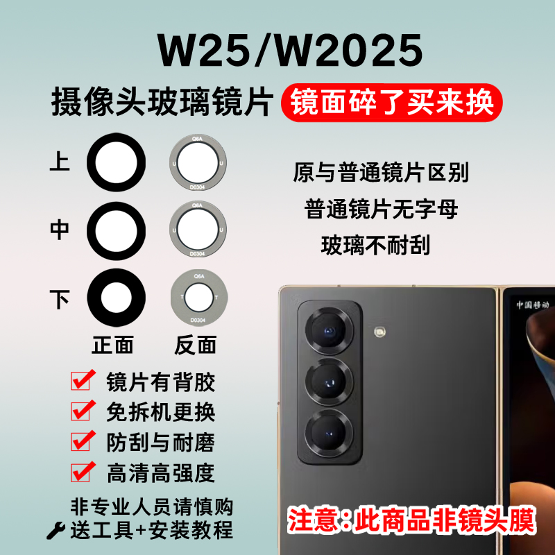 适用三星W25后置摄像头玻璃镜片 W2025手机照相机玻璃镜面 镜头盖