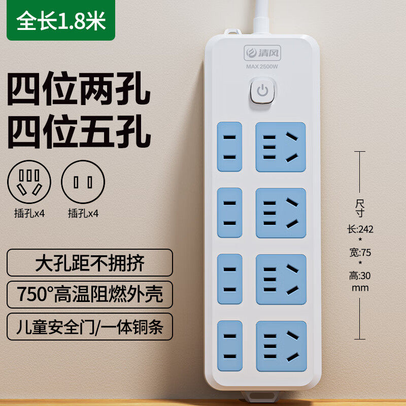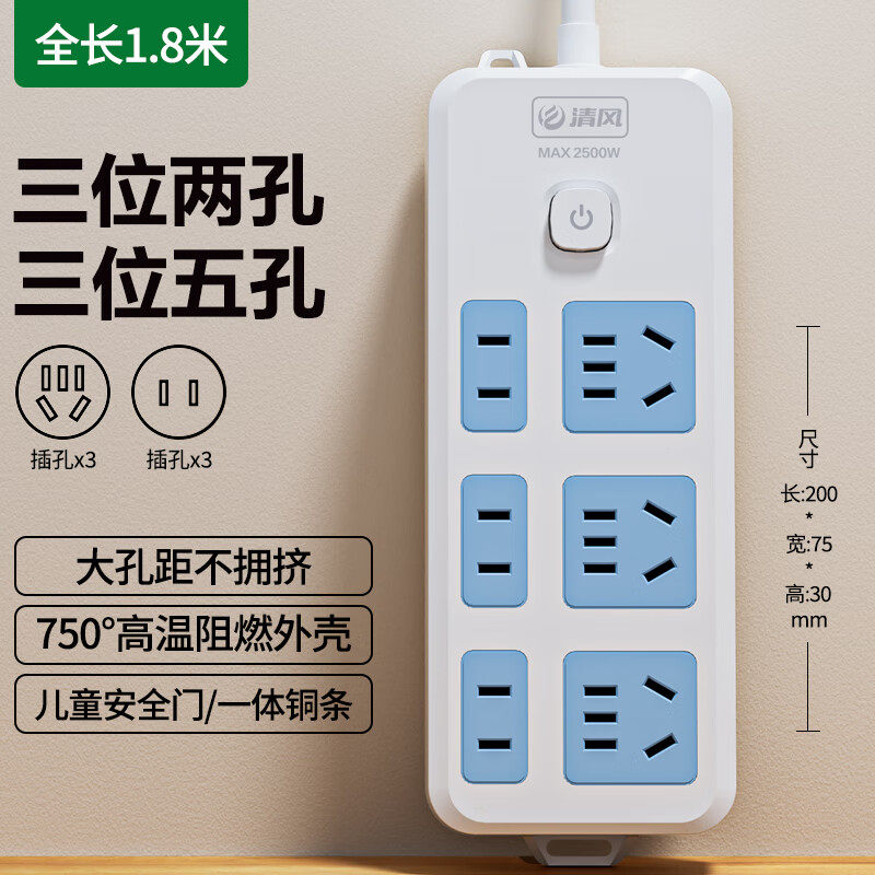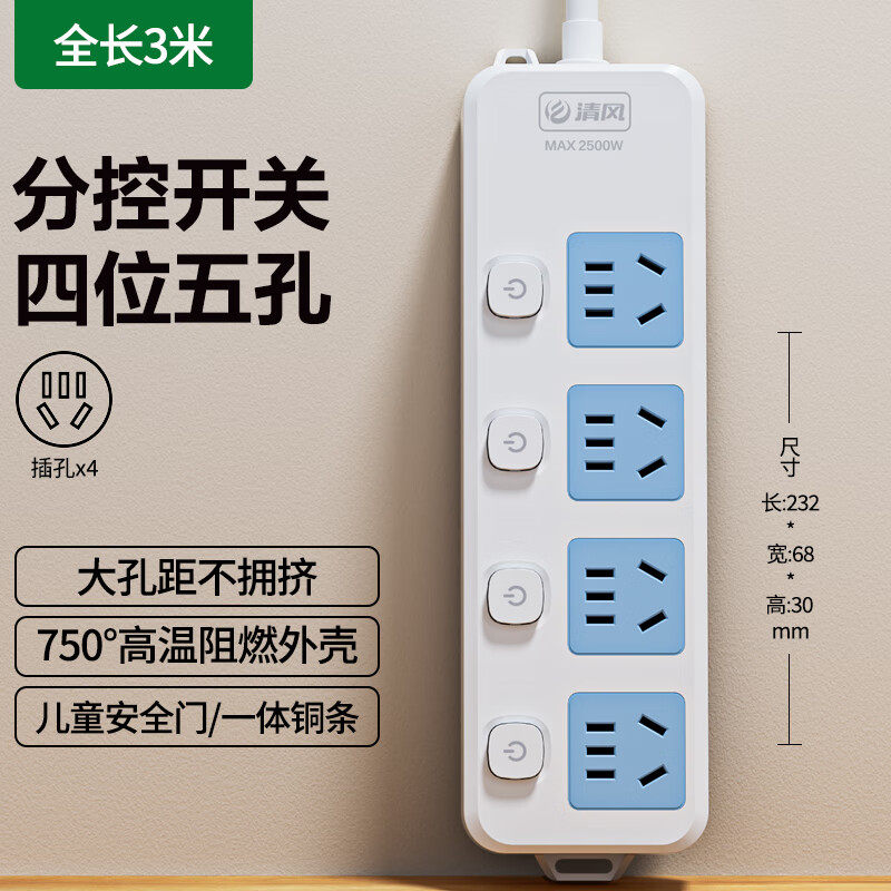 KYFEN/清风新国标安全插座多位总控插排多规格总控分控排插