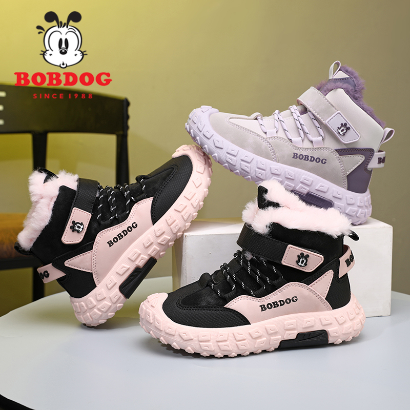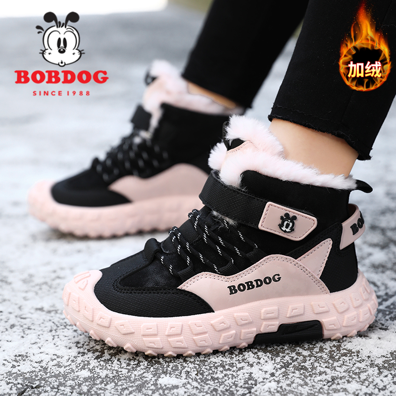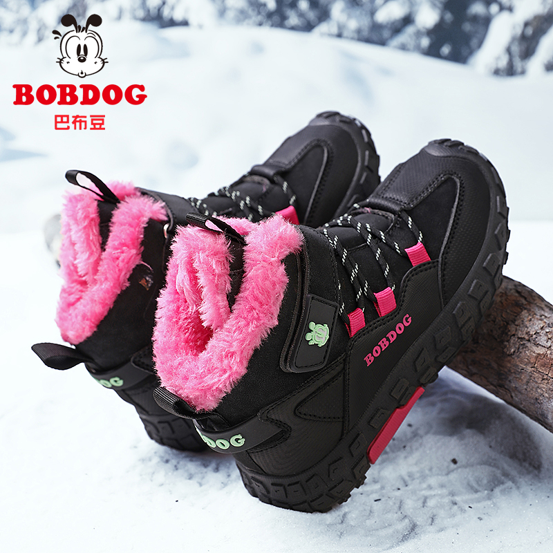巴布豆儿童女孩加绒加厚大棉运动鞋2025新款冬季高帮抗寒雪地靴