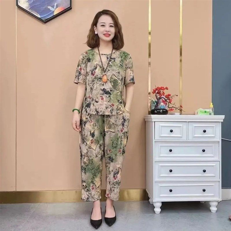 高档夏季妈妈装休闲套装新款短袖T恤中老年女大码上衣裤子两件套