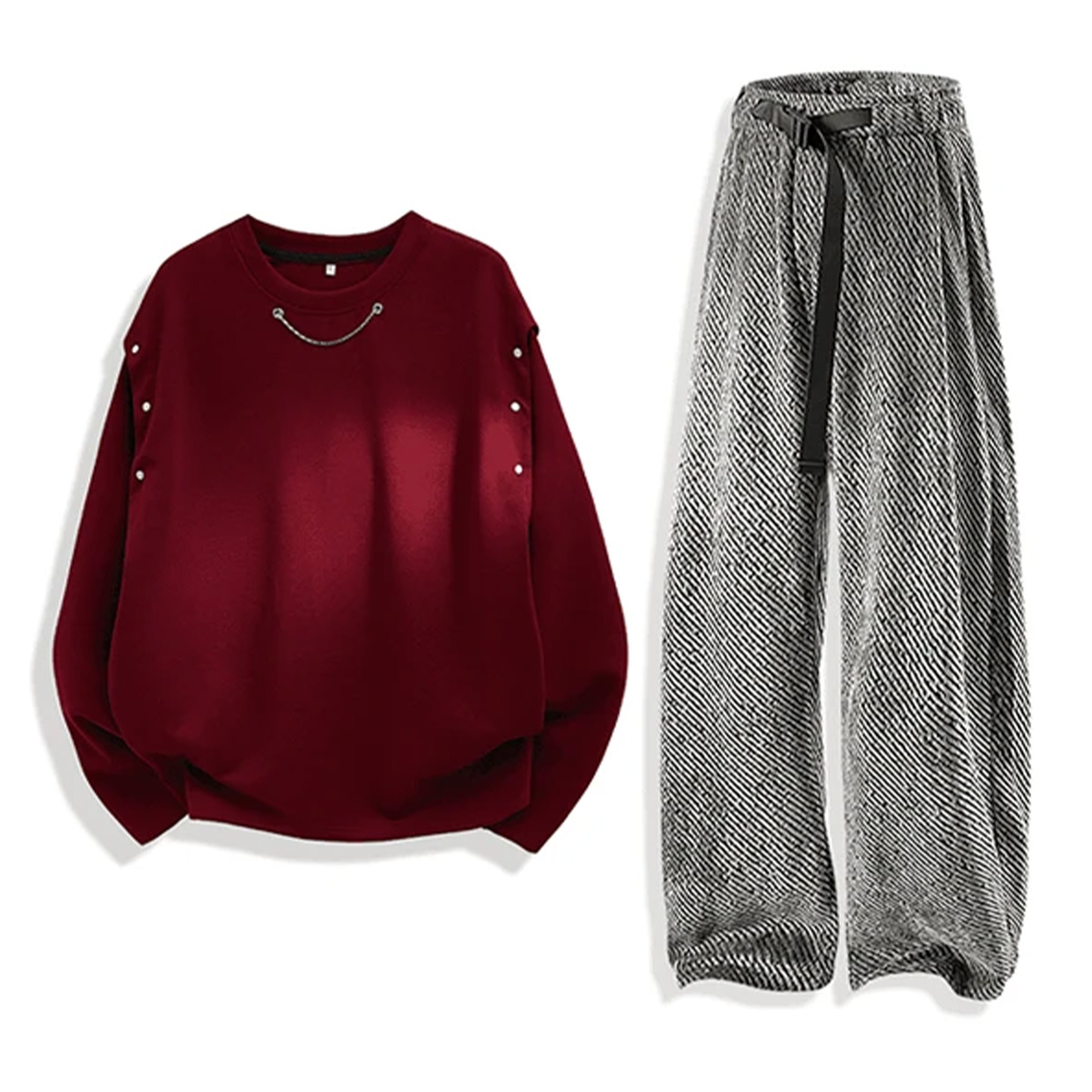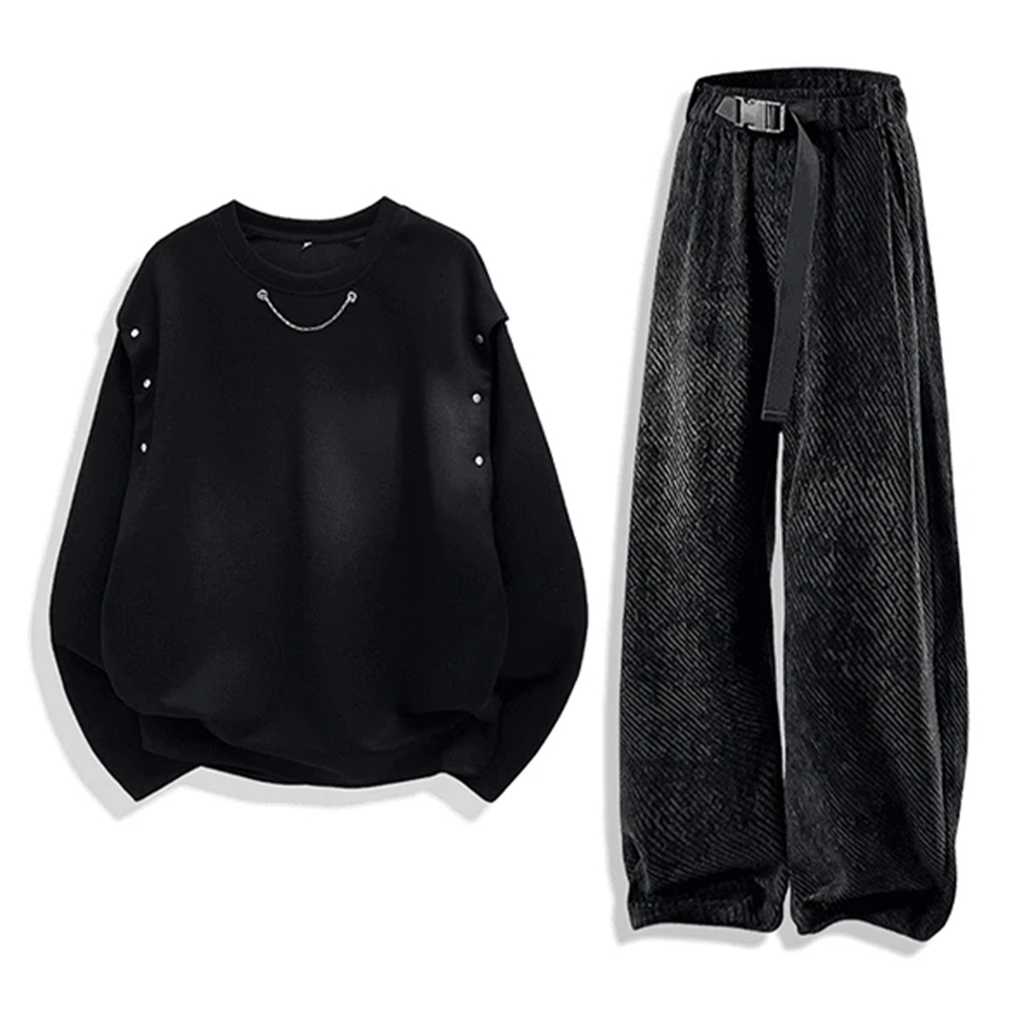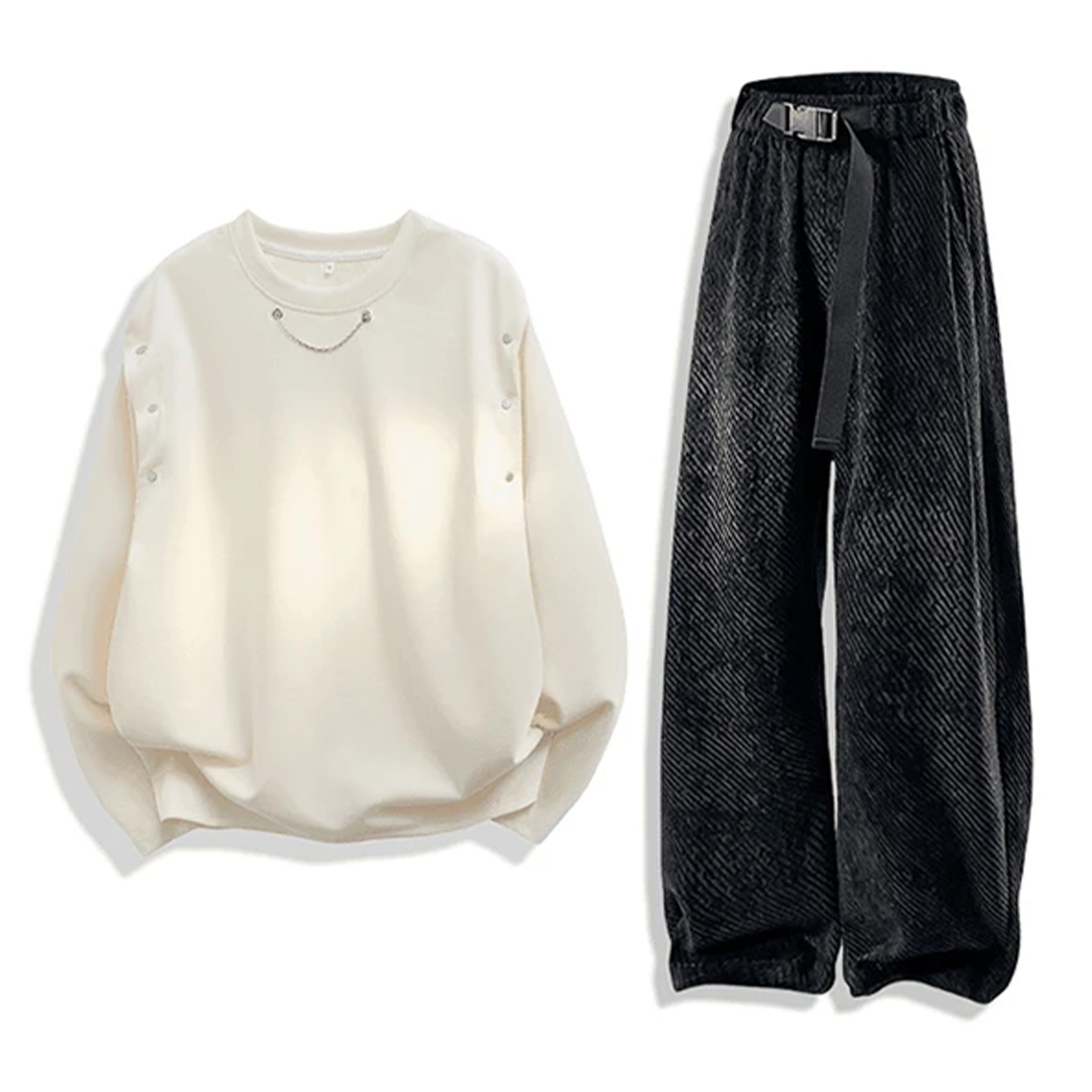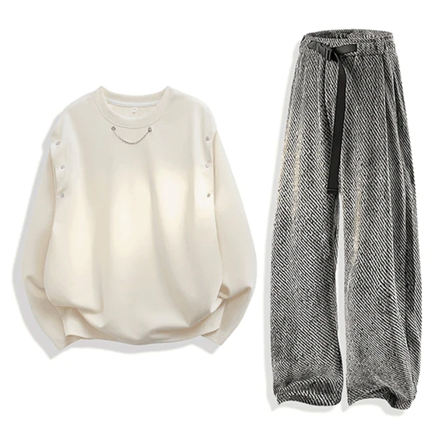 可拆卸设计两件穿圆领卫衣套装男女同款宽松直筒雪尼尔裤子两件套