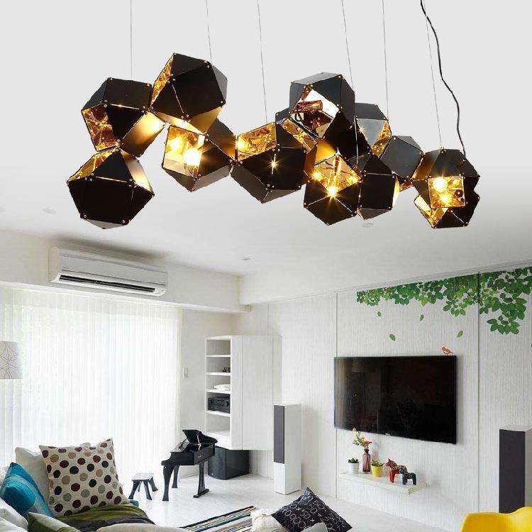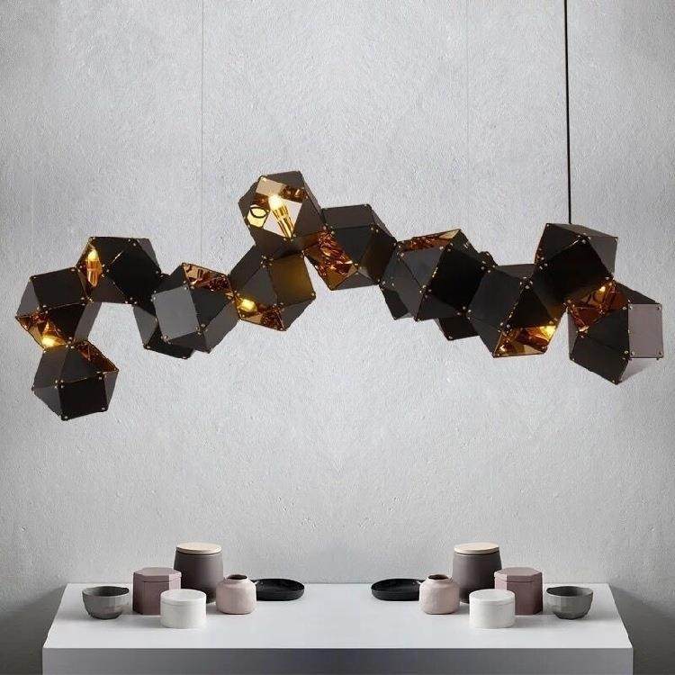 复古北欧多面体吊灯不锈餐厅灯轻奢风多面魔方分子奢吧台工业吊灯