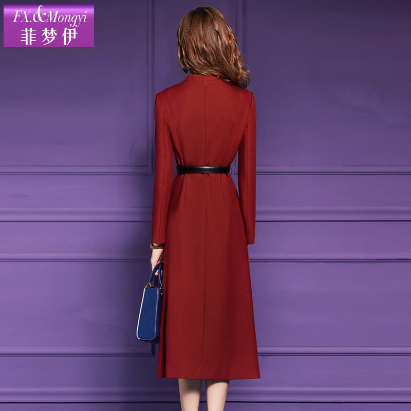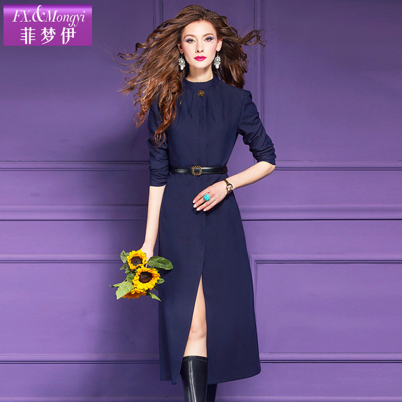 【直播专享】菲梦伊纯色衬衫连衣裙女秋装高端气质收腰开叉裙子