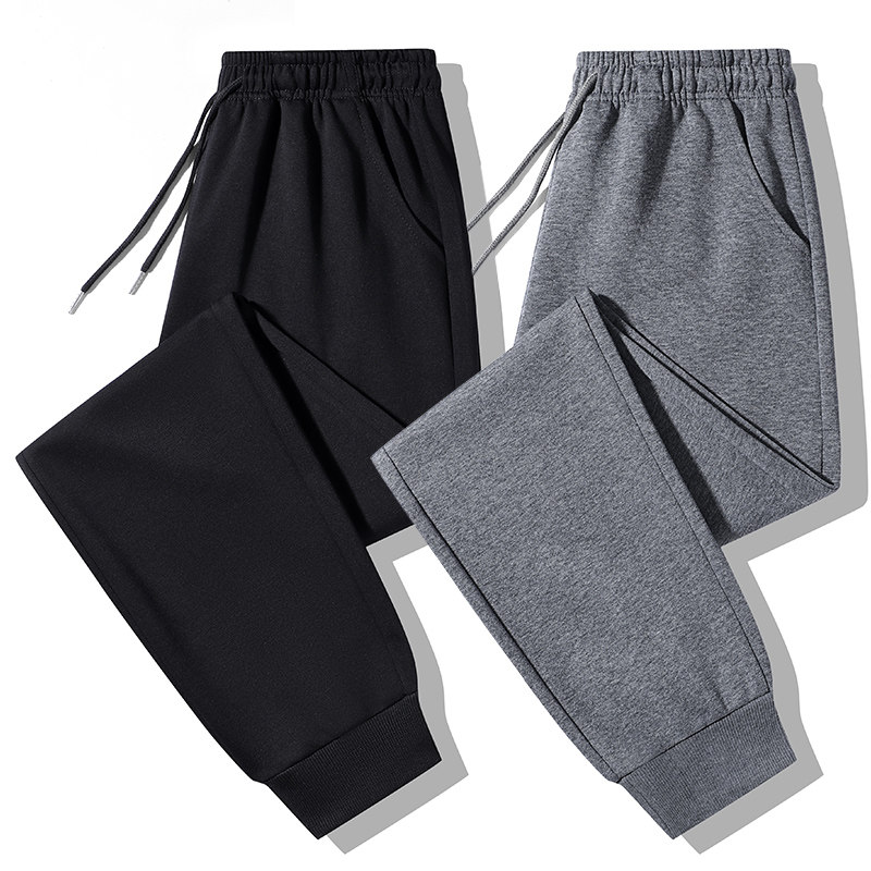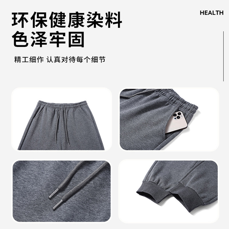 秋冬季纯色裤子男士纯棉束脚休闲裤大码宽松运动情侣加绒加厚卫裤