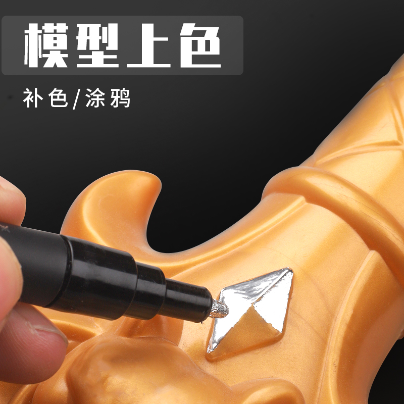 斯塔sta电镀笔手办修复镀铬笔银色油漆笔镜面金属笔电镀银修补马克笔金属亮银白色银粉补漆笔