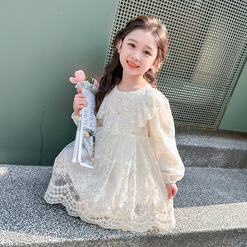 女童春装连衣裙2024新款小童洋气女宝宝裙子春秋款儿童蕾丝公主裙