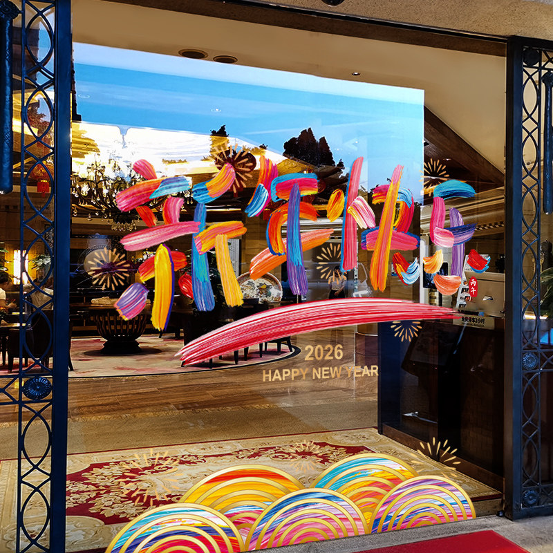 新年装饰窗花马年春节彩色窗贴2026过年店铺橱窗静电玻璃贴门贴纸