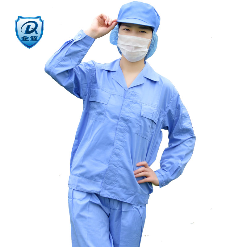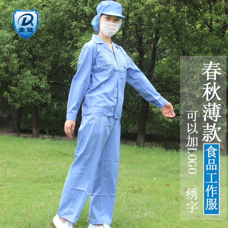 食品厂工作服春夏薄款长袖蓝色扣子男女工厂车间服套装透气棉防护