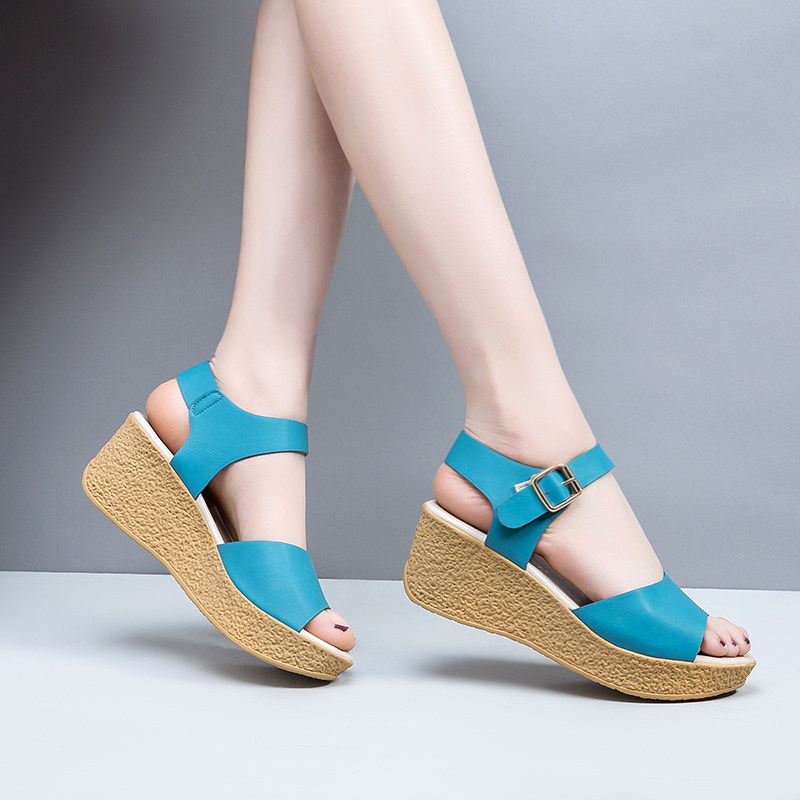 夏季新款松糕厚底学生女凉鞋33小码34真皮高跟鱼嘴妈妈鞋41大码42