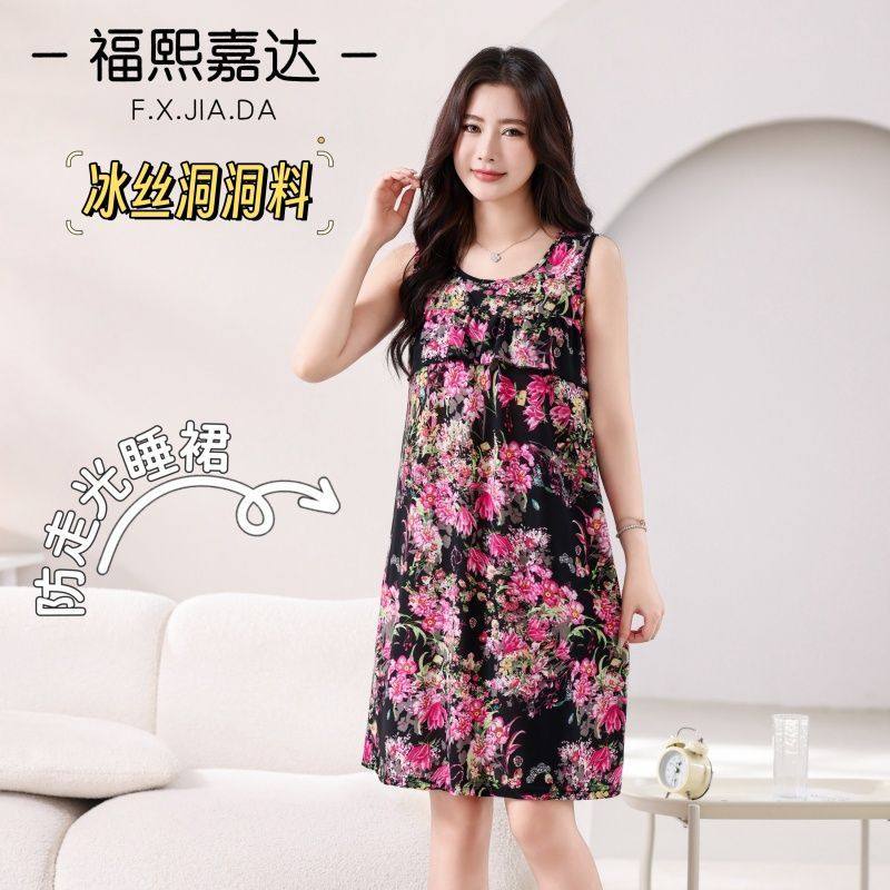 时尚夏季连衣裙福熙嘉达冰丝清凉舒适纯欲派对睡裙-简约圆领!