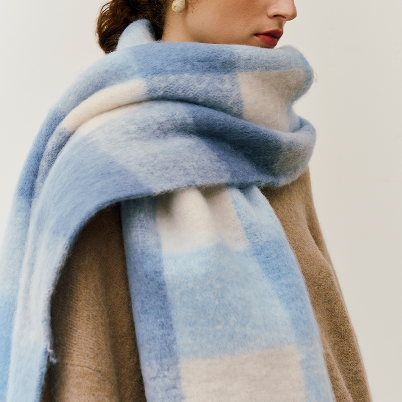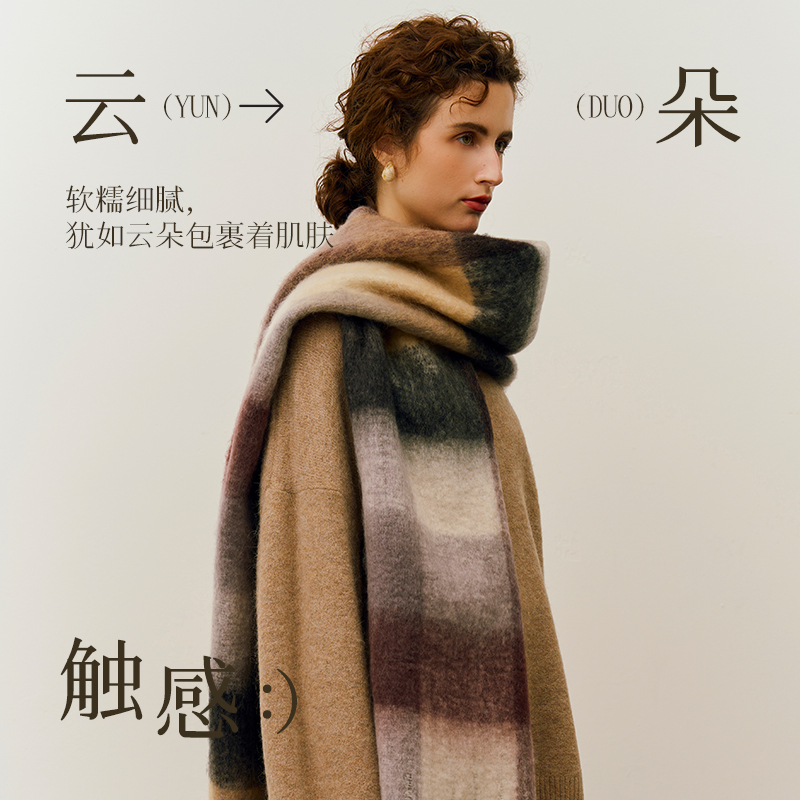 JESSIEJANE英伦风格子围巾女冬季2024新款棕色时尚加厚大披肩两用