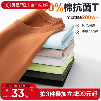 [纯棉]网易严选男士T恤夏白色短袖女薄款长袖上衣打底衫内搭小白T