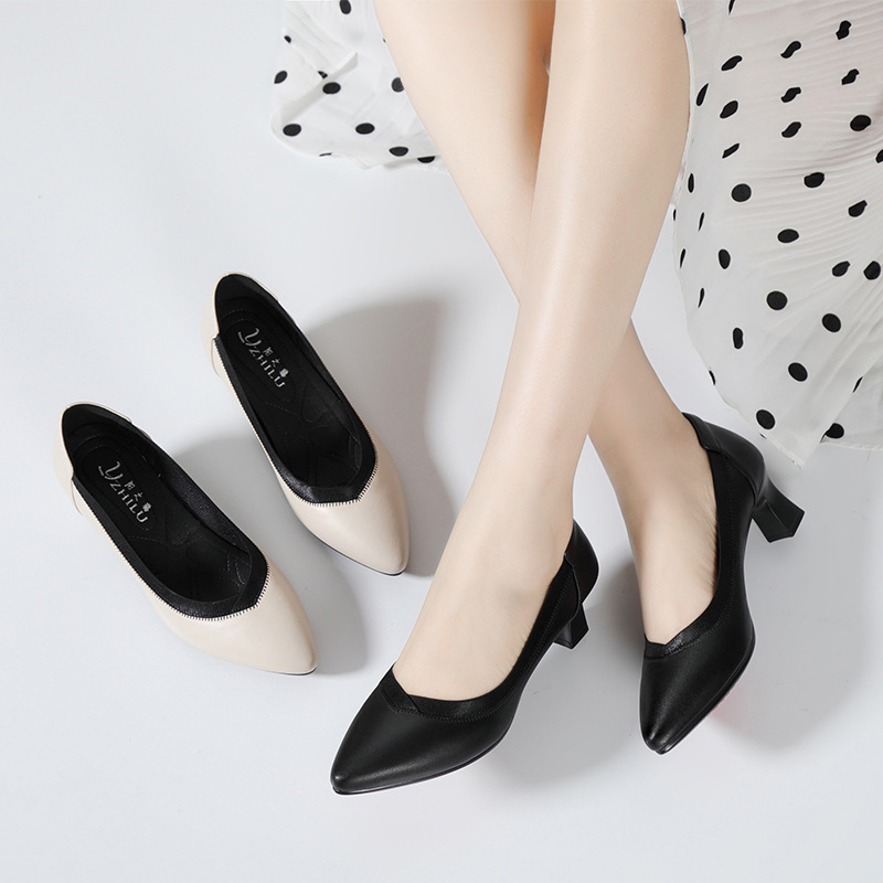 浅口单鞋女设计感小众年新款春季女鞋子中跟粗跟中年妈妈皮鞋