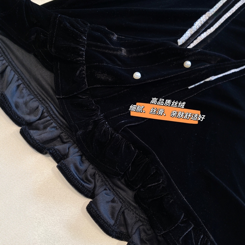 AMR UU◆法式小衫 时髦蕾丝拼接丝绒小衫黑色上衣女2025秋新款