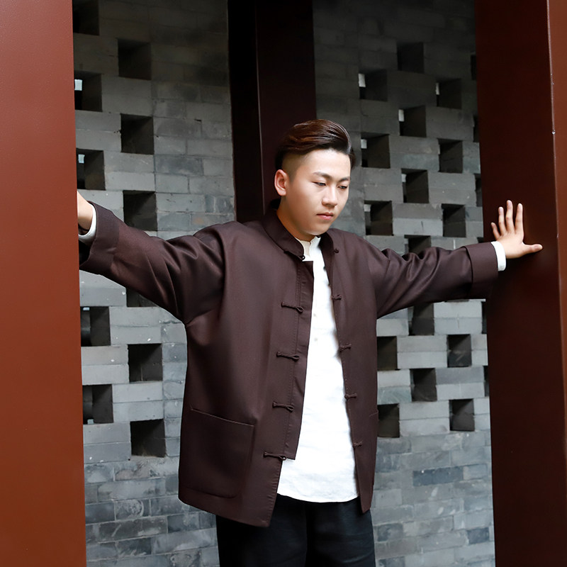 瑞蚨祥男士新中式羊毛春秋新款挽袖长袖礼服婚礼爸爸装国风唐装