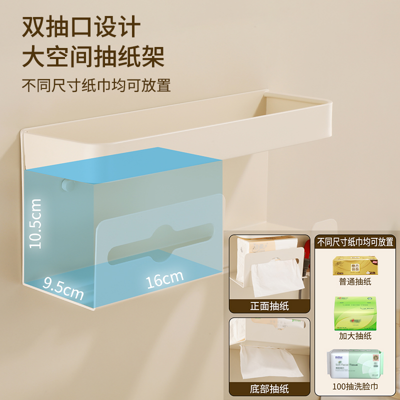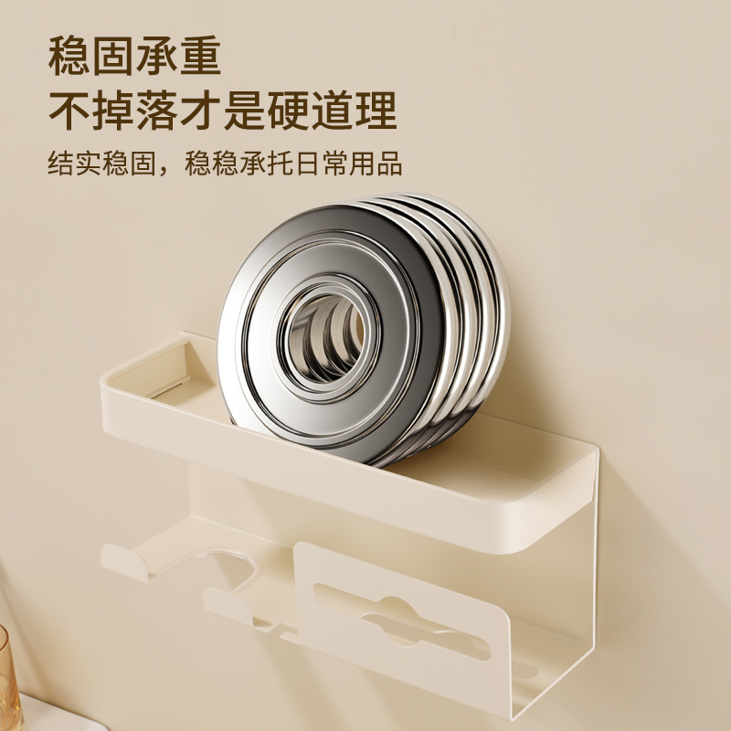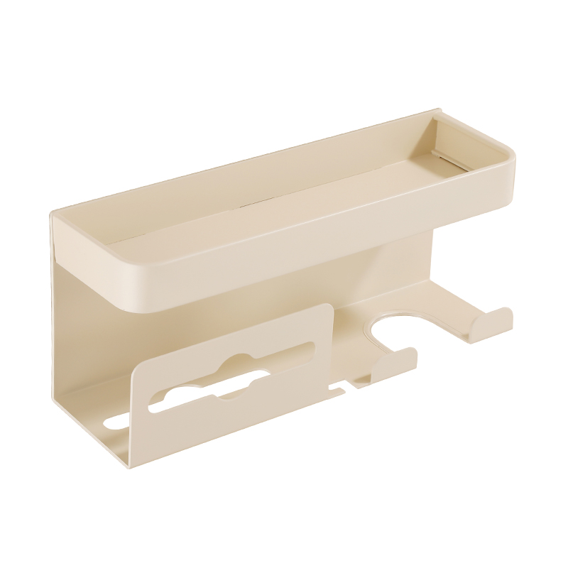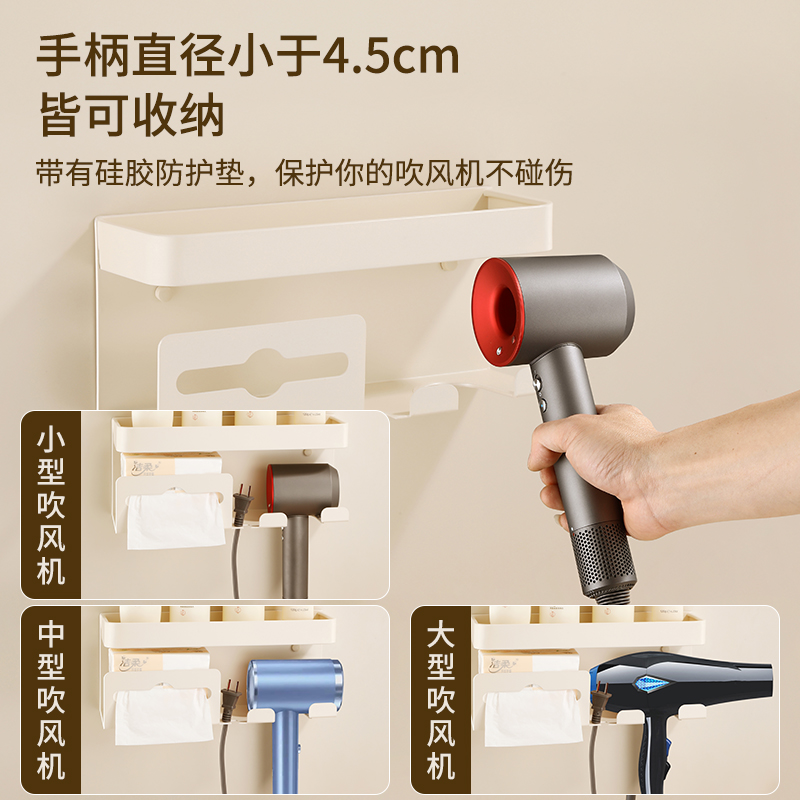 奶油白免打孔吹风机置物架壁挂 浴室太空铝多功能化妆品架纸巾架