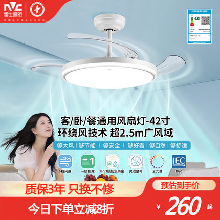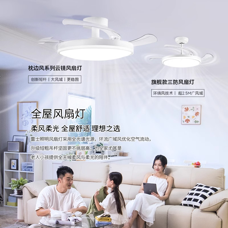 雷士照明隐形扇风扇吊灯客厅餐厅卧室家用风大轻音简约现代电扇灯