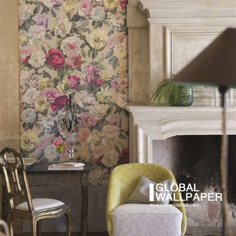 英式墙布手绘玫瑰花温馨壁布客厅沙发卧室电视背景墙壁纸壁画
