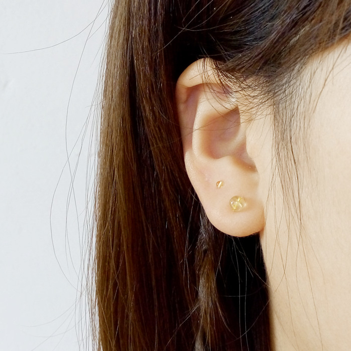 手工5mm甜美天然黄发晶钛晶小耳钉足银999纯银耳钉养耳防过敏女