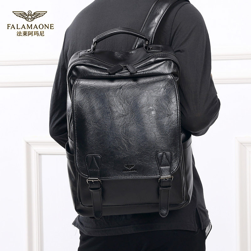 亏本清仓真皮法莱阿玛尼男士双肩包潮流百搭款男电脑包大容量旅行