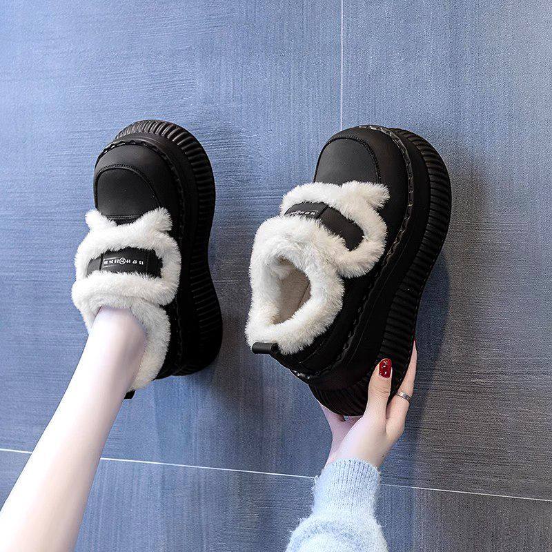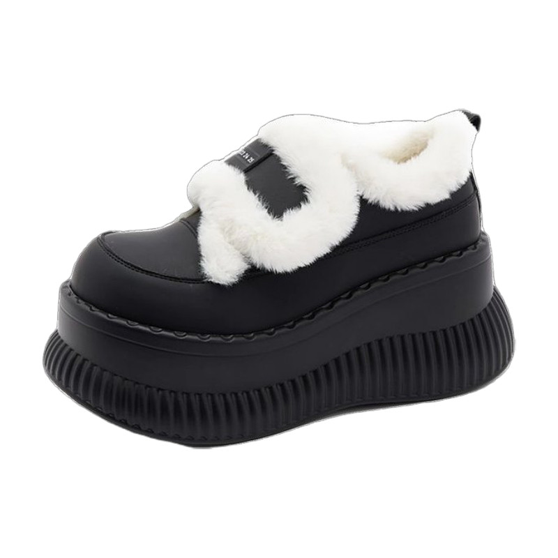 秋冬季新款小个子厚底增高白色毛毛魔术贴雪地靴女加绒保暖棉短靴