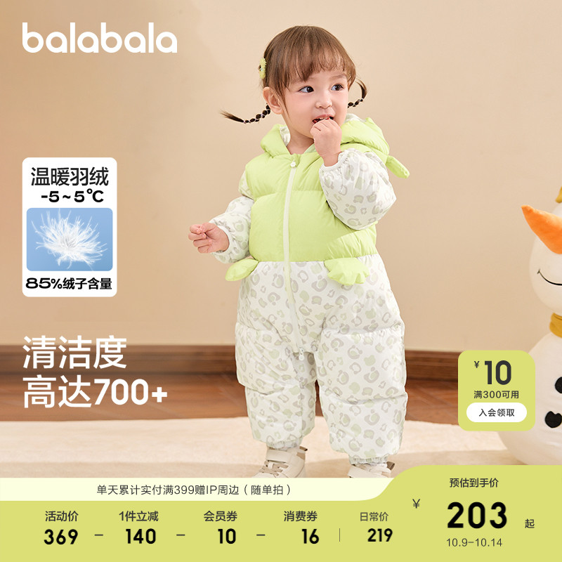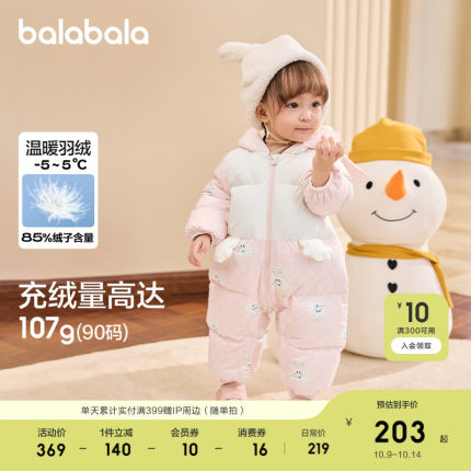 巴拉巴拉童装婴儿连体衣羽绒服假两件爬服宝宝衣服儿童冬装外出萌