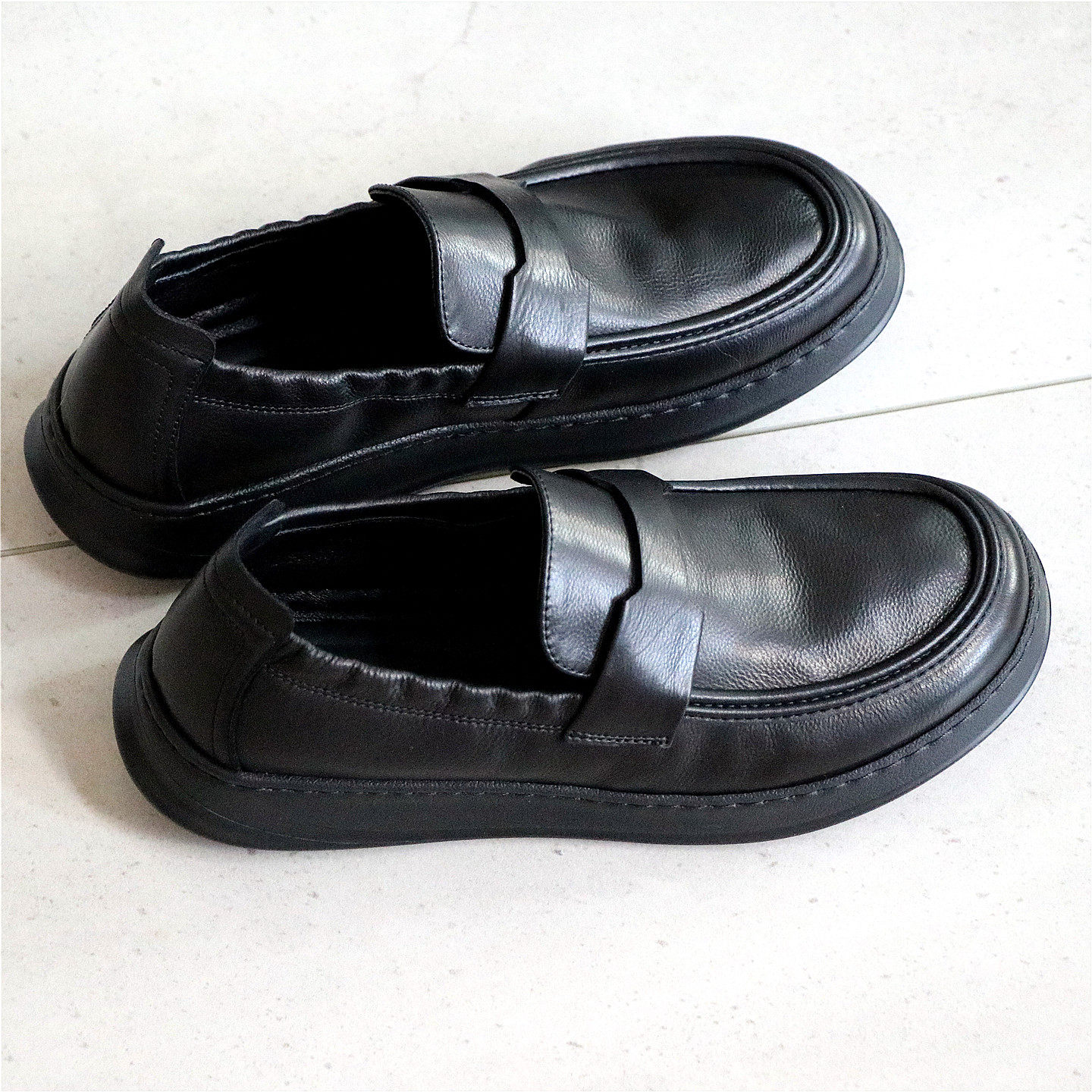 轻量化一双仅400克!胎摔头层牛皮!羊皮里乐福鞋套脚休闲皮鞋男