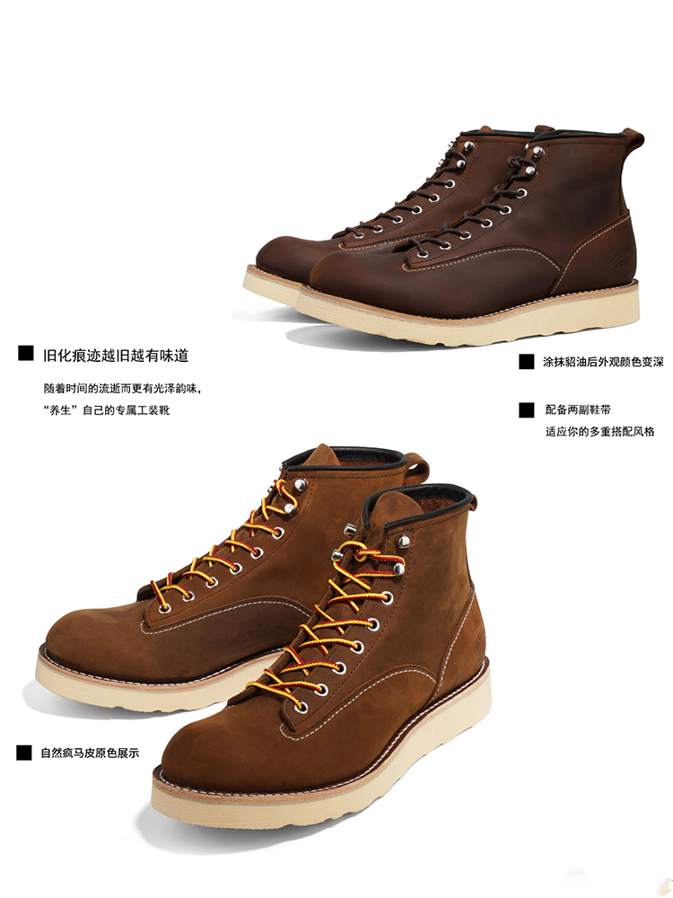 BLESS SHOE LINEMAN boots固特异工艺疯马皮工装靴马丁靴深棕男鞋