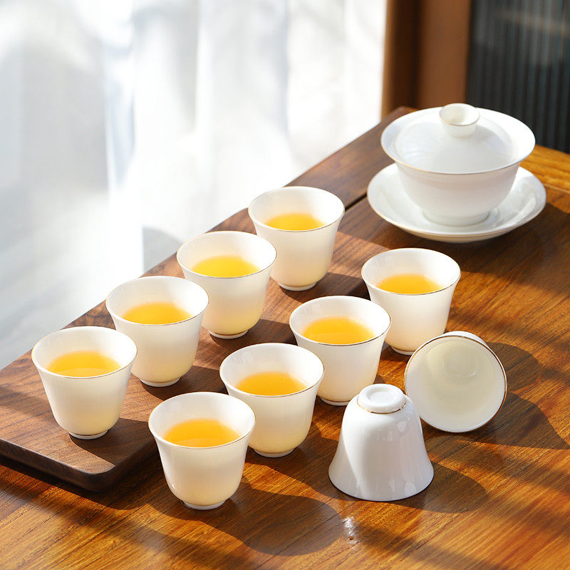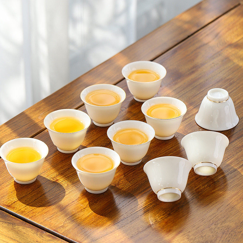 白瓷茶杯10只羊脂玉功夫茶杯6只陶瓷小茶杯家用待客喝茶专用客杯