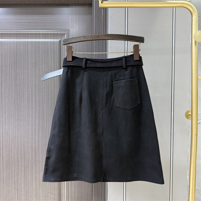复古黑色鹿皮绒半身裙女秋冬款小个子高腰防走光a字显瘦包臀短裙