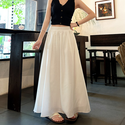 莱赛尔天丝羊毛气质半身裙女夏季月光裙高腰a字垂坠感中长款伞裙