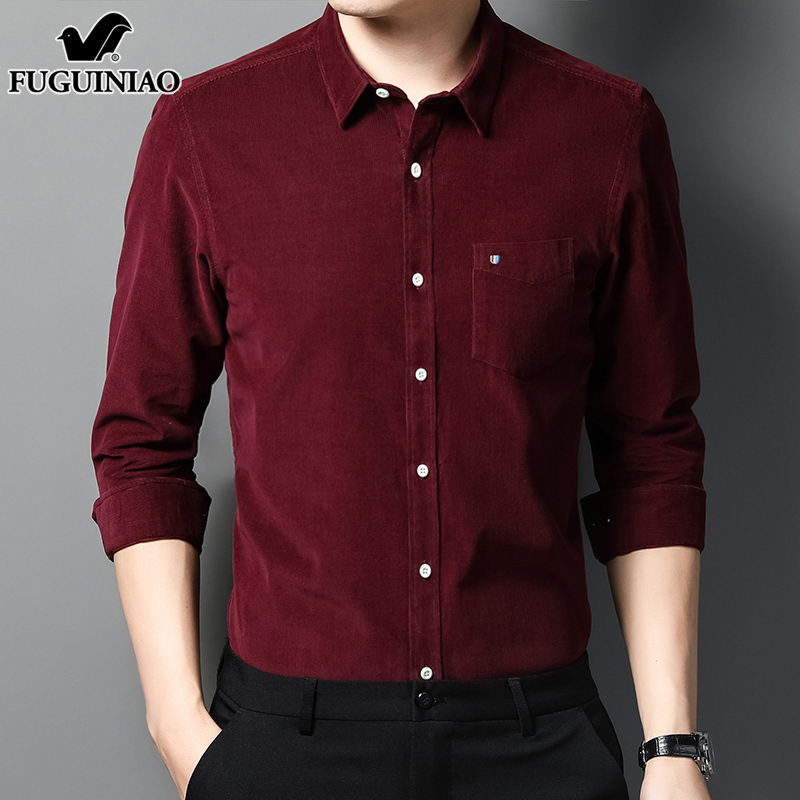 富贵鸟红色长袖衬衫男士2025年秋季新款灯芯绒寸衫休闲衬衣男外套