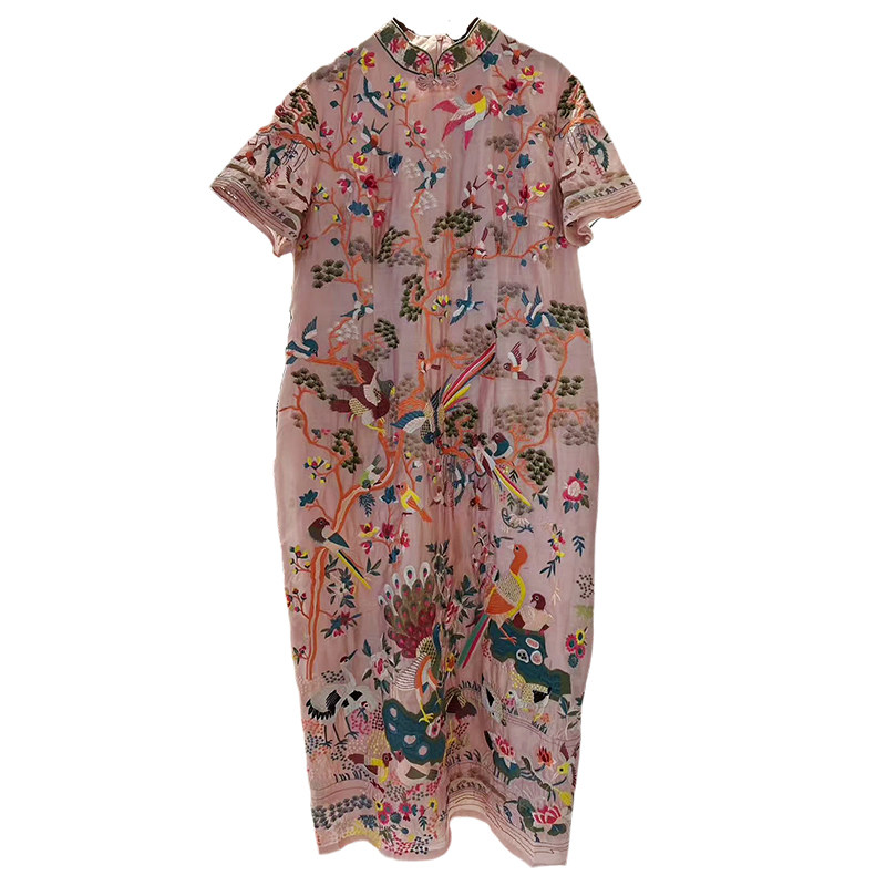 安娜滕新中式天丝刺绣旗袍连衣裙
