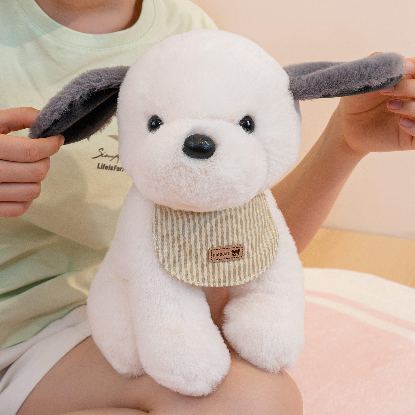 可爱围兜小狗金毛狗公仔毛绒玩具仿真狗狗玩偶跨境日系治愈小奶狗