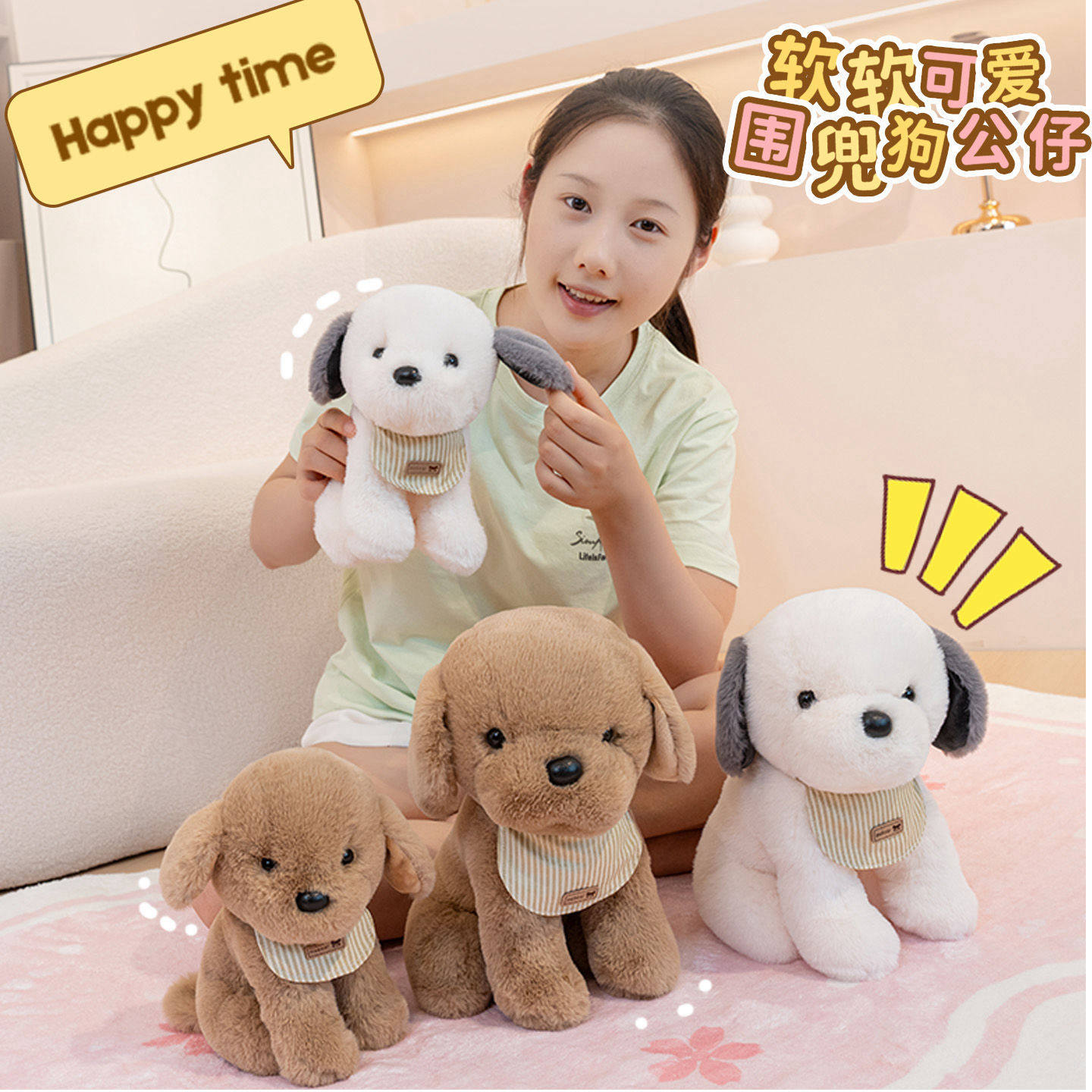 可爱围兜小狗金毛狗公仔毛绒玩具