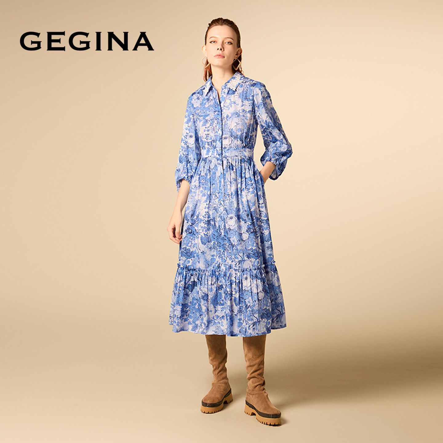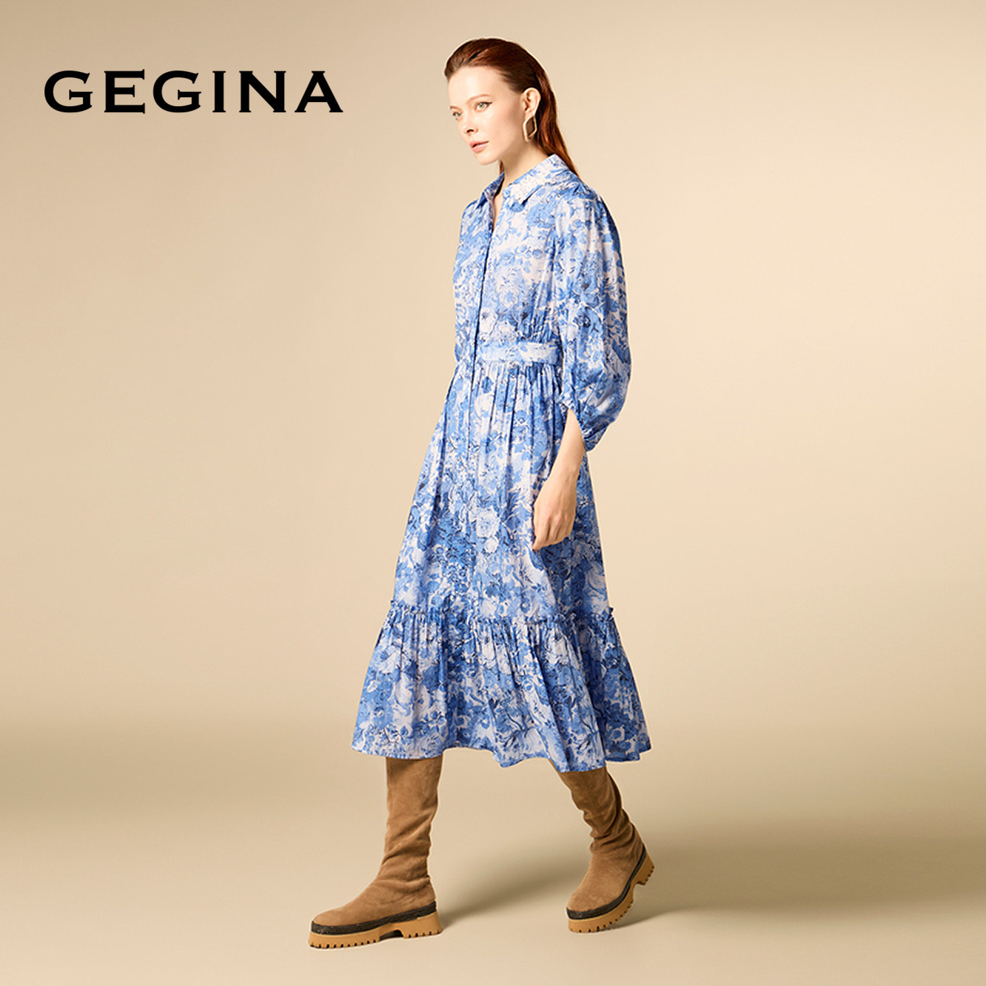 GEGINA吉吉娜法式气质LIBERTY印花连衣裙七分袖碎花裙子商场同款