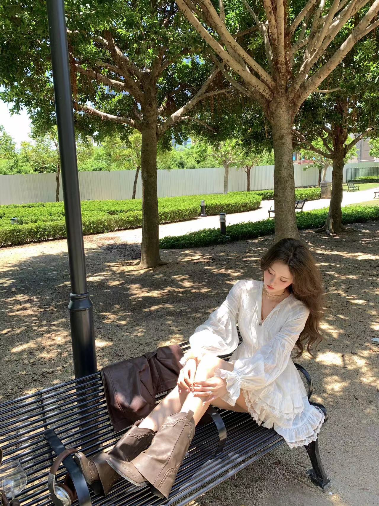 八盖pinky piggy 初恋情结 白色长袖气质连衣裙女不规则蛋糕裙