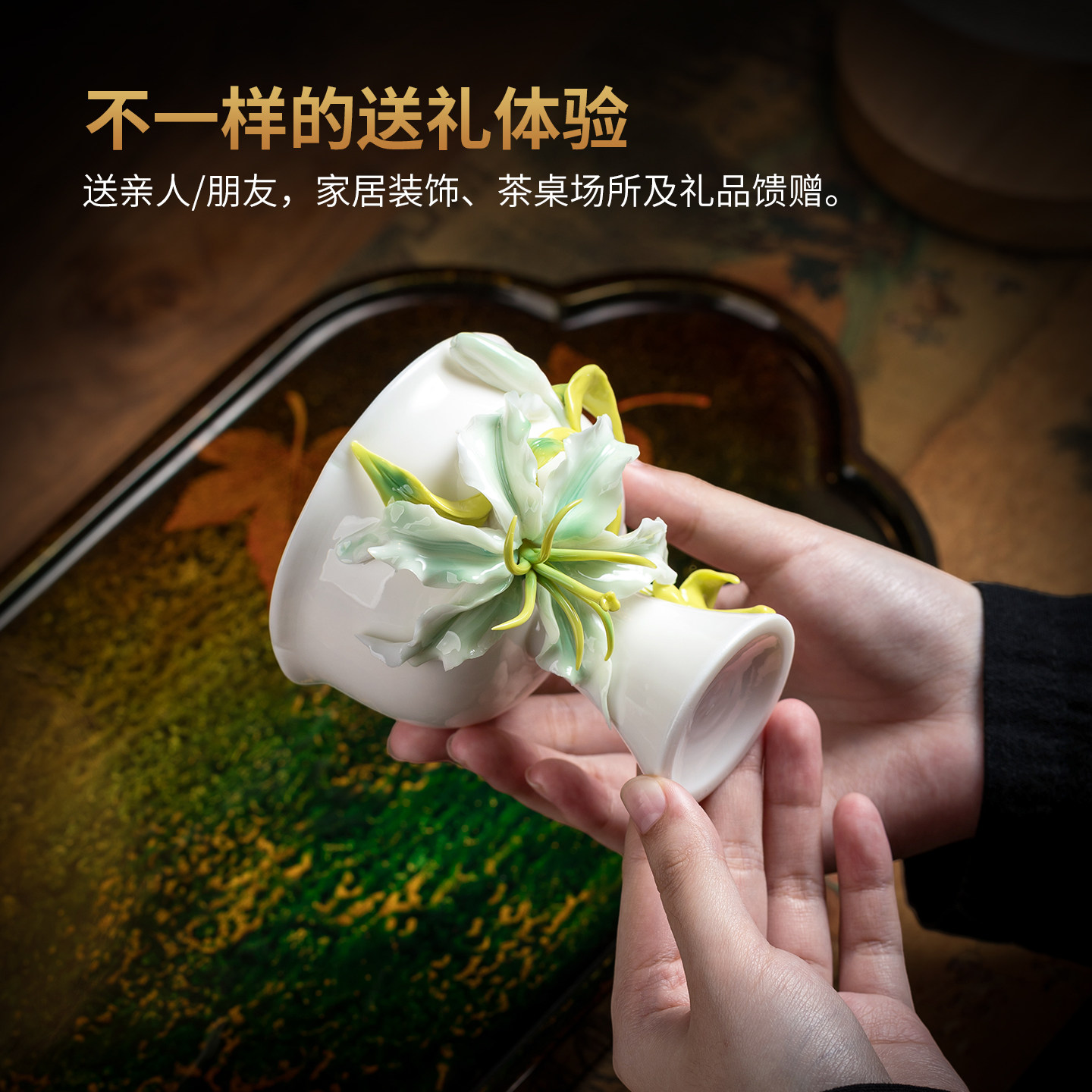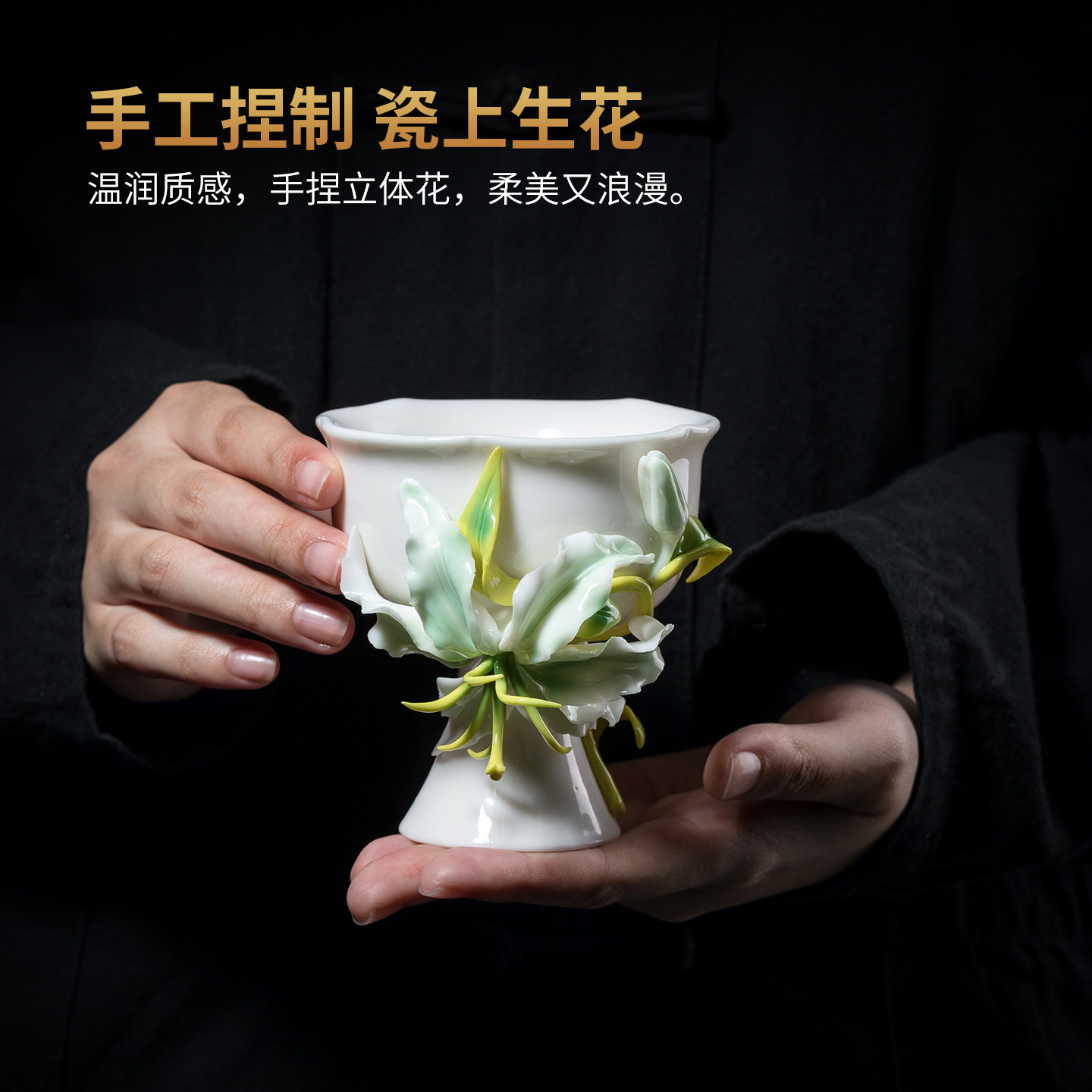 非遗手捏花陶瓷水杯百合花茶杯子马克杯女神送女生生日礼物高颜值
