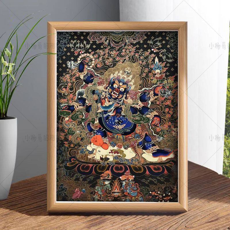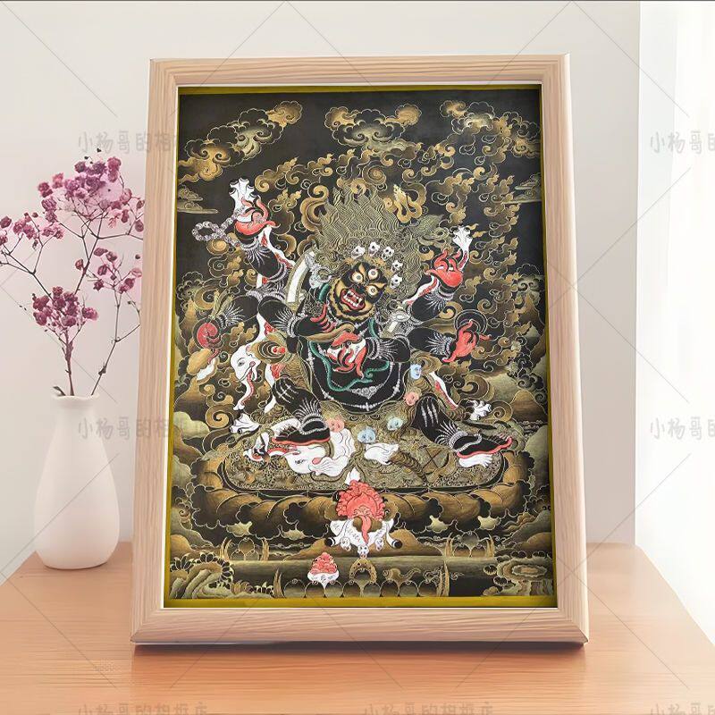 六臂玛哈嘎啦大黑天唐卡坛城汉化藏传家居桌面供俸相框招财镇宅画