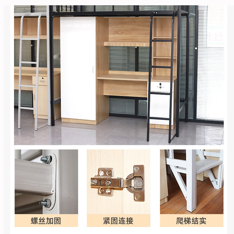 厂家供应上床下桌床爬梯书柜学生宿舍高架一体组合公寓床简约风